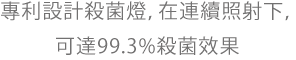 專利設計殺菌燈,在連續照射下,可達99%殺菌效果。